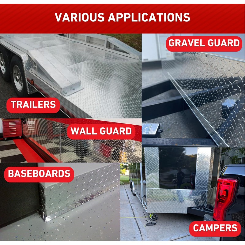- {High Quality} - 100% Aluminum Embossed Diamond Treadplate - 0.025 thin. - Easy to work with. Molds around curves, and can be cut easily with tin snips.