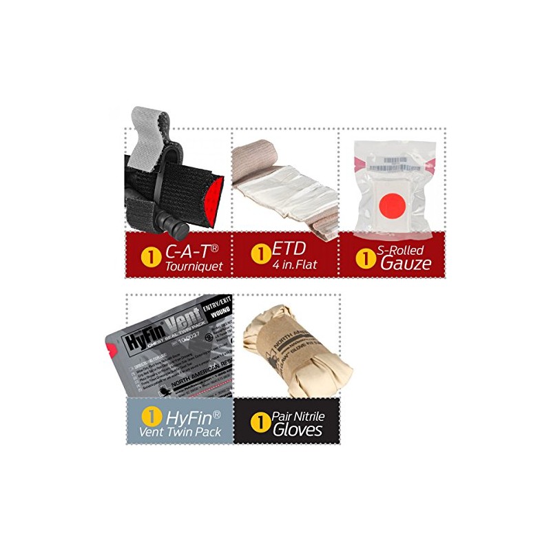 - Can connect to the assault vest/body armor or to a duty/pistol belt Contains the essential equipment needed for self-aid/buddy-aid to address the top leading causes of potentially preventable death in a tactical environment Quick Pull Tab easily opens the kit with just one hand Has a unique, detachable shock-cord inner panel that can be adjusted to your internal components Inner panel is easily removable for easy access to your kit