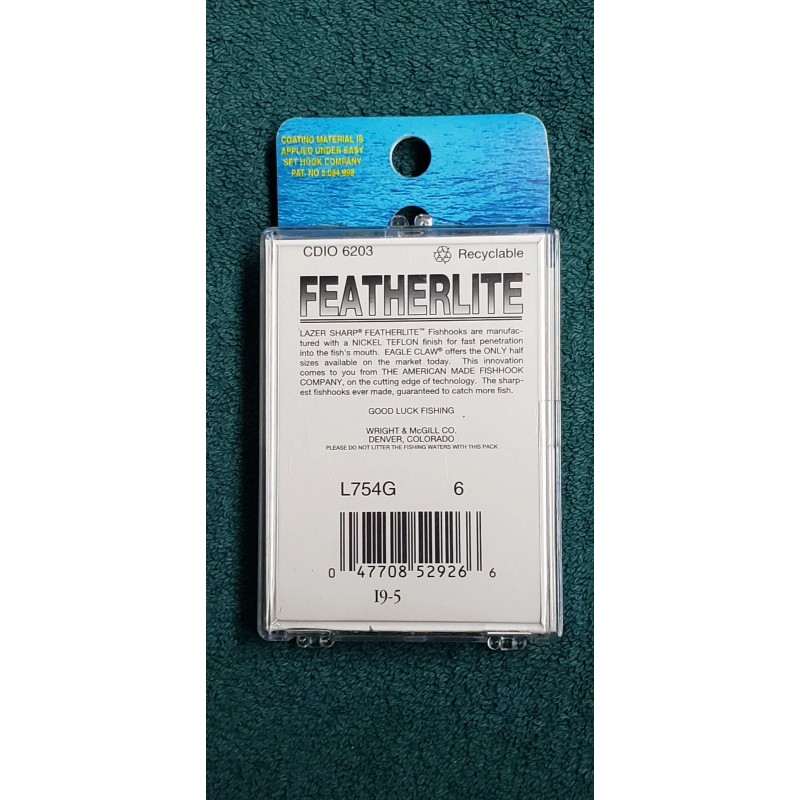 Eagle Claw Lot of 2 - Eagle Claw Lazer Sharp Featherlite Treble Hook size 6 L754G-6  5/pack