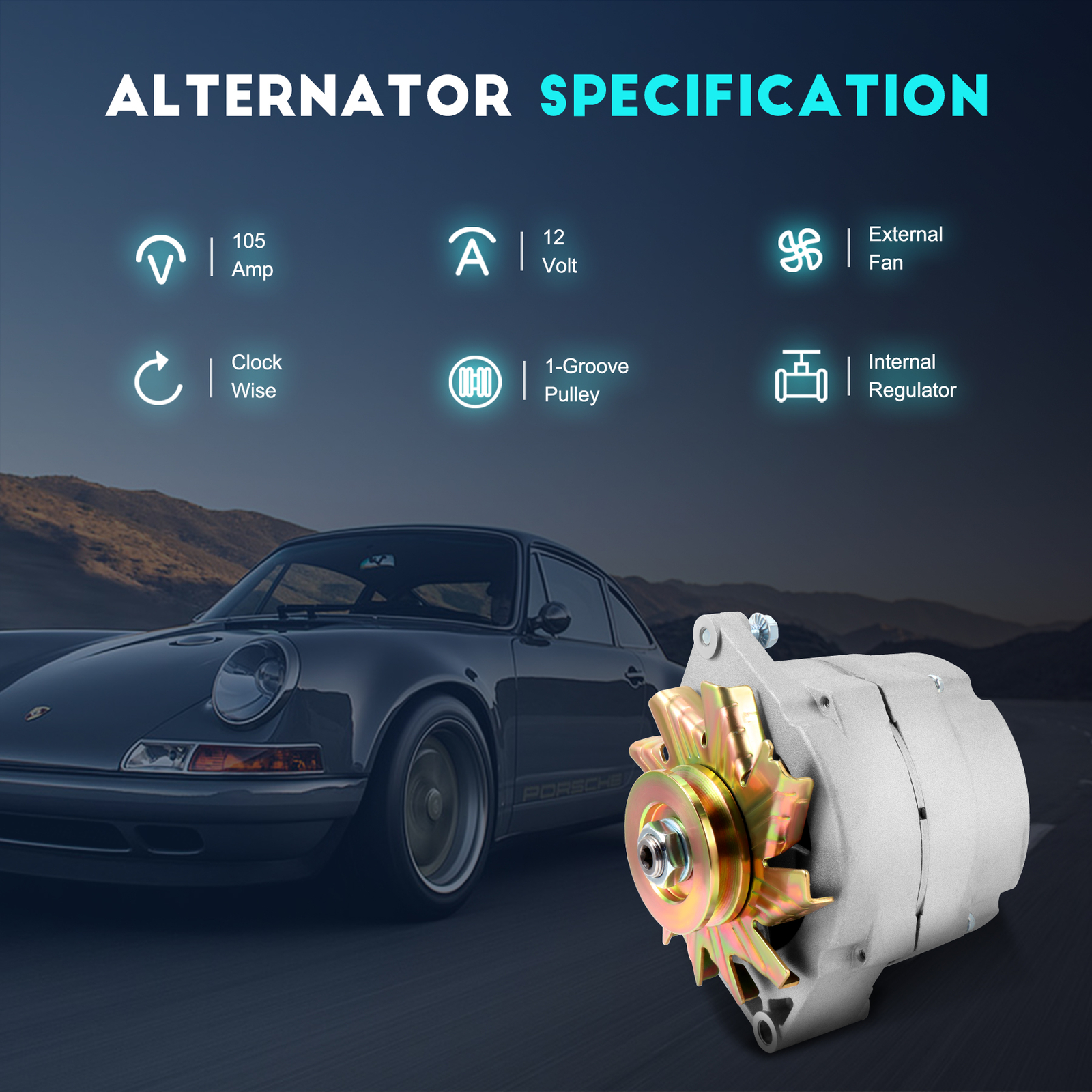 EAGLE For DELCO 10SI Self-exciting SBC BBC 7127-SE105 ADR0335 Alternator 105Amp 1-Wire