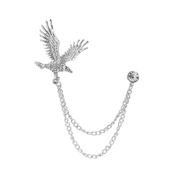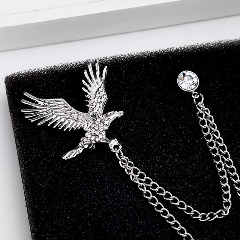 Eagle Hanging Chain Brooch for Men - Elegant Lapel Pin Badge with Chains Brooch (Silver color)