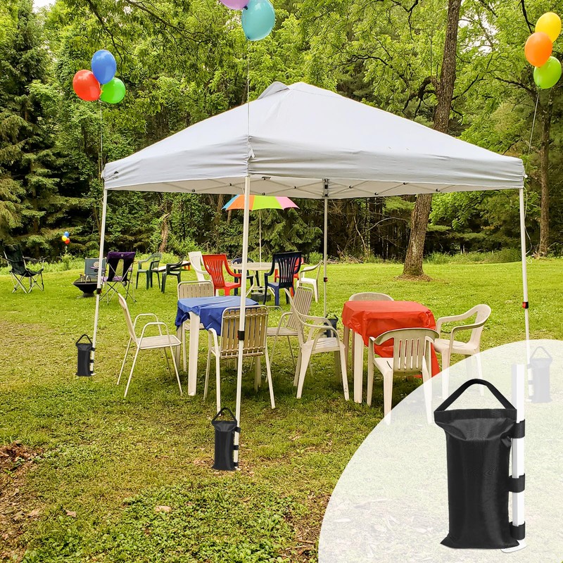 - EASY TO USE: EAGLE PEAK weight bags easily fill with sand, dirt or gravel and offer more stability and added safety. They easily fold and store for convenient transport. Our weight bags are easily attached to canopy legs with 2 velcro straps for a tight fit.
