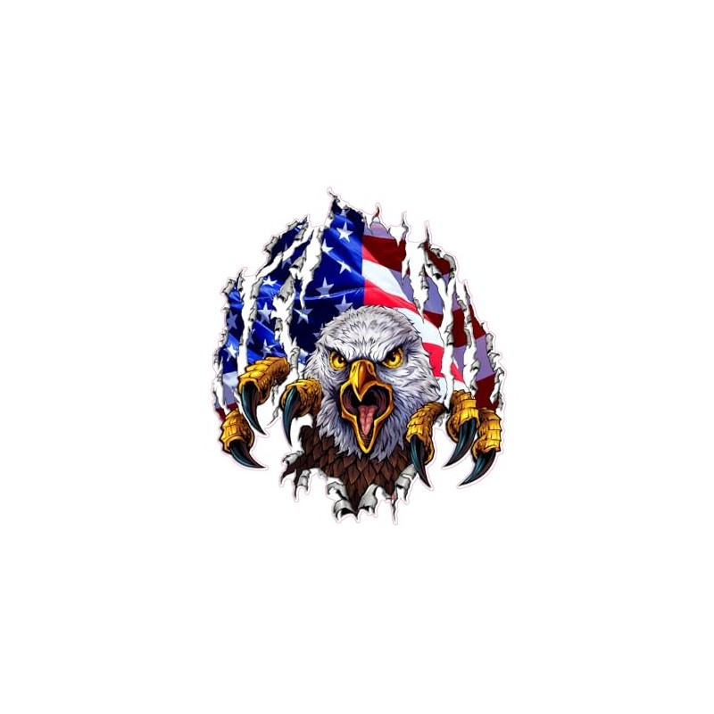 Eagle Ripping Through American Flag Background Decal Sticker (24" x 22")