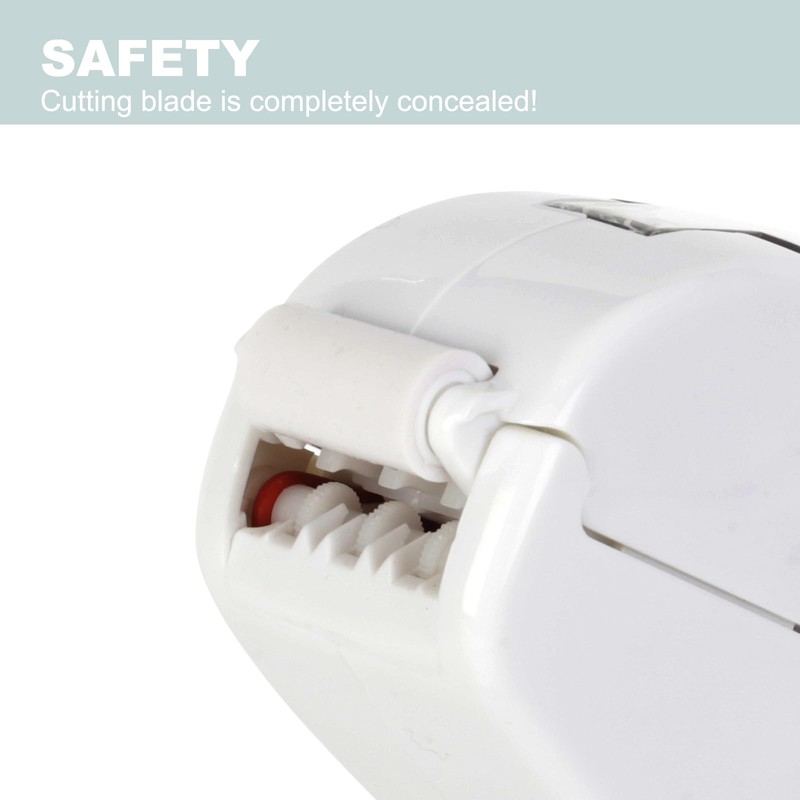 - HIDDEN BLADE FOR SAFETY The blade is securely hidden in the dispenser to avoid injury. This makes the dispenser ideal for everyday use