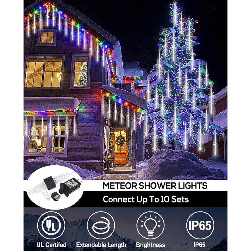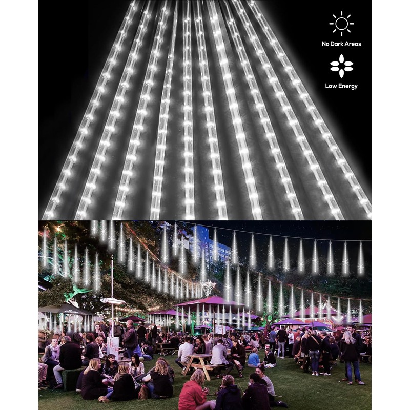 - Energy Efficient: The meteor shower LED lights are waterproof, dustproof, and made of transparent PC material that is corrosion-resistant, cost-resistant, and aging-resistant, making them more durable. The falling raindrop lights are free from time and space constraints, have low power consumption, and are energy-saving. They can be used as one or be connected (up to ten string lights)