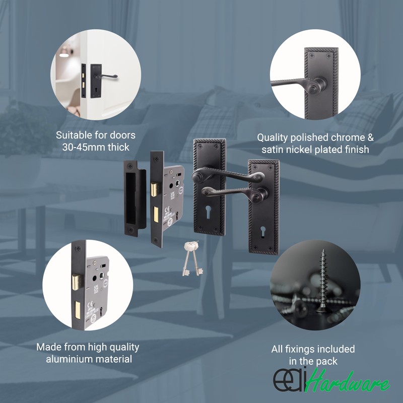 • EASY INSTALLATION: Installing our Georgian door handles is a breeze, thanks to the included hardware (1 x pair of keyhole lock door handles with matching screws, 1 x sashlock 64mm case/44mm backset and matching keep.) It’s a DIY-friendly solution that saves you time & hassle.