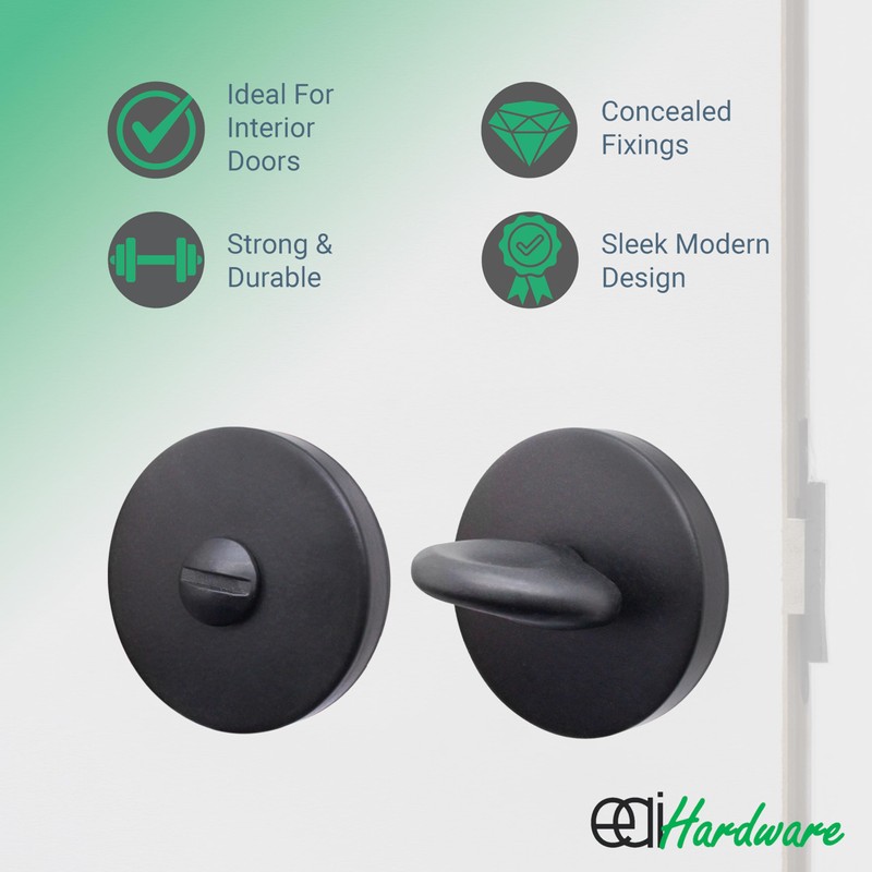 - VERSATILE COMPATIBILITY: Our black turn & release is designed to fit standard internal doors, making it a versatile choice for both residential & commercial settings . Upgrade your room's functionality & style complete with back-to-back bolts for a solid permanent fit.