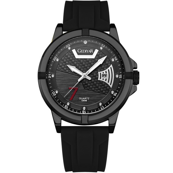EAJOMIN Fashion Analog Watch for Men, Waterproof Quartz Watch with Silicone Band, Unique Design Mens Military Army Sports Calendar Date Big Large Face Wrist Watch (G698 Black)