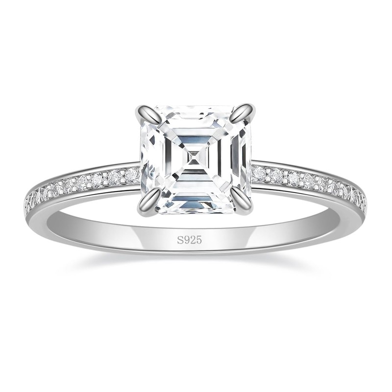 EAMTI 2.5CT Asscher Cut Engagement Rings for Women Cubic Zirconia CZ 925 Sterling Silver Wedding Rings for Her Solitaire Promise Wedding Bands Size 5