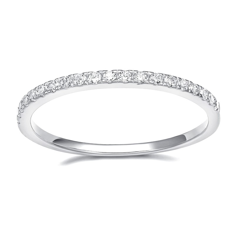 EAMTI - Anillo de compromiso apilable de plata de ley 925 de 2 mm con circonita cúbica de media eternidad, tamaño 3-13, Metal, Zirconia cúbica