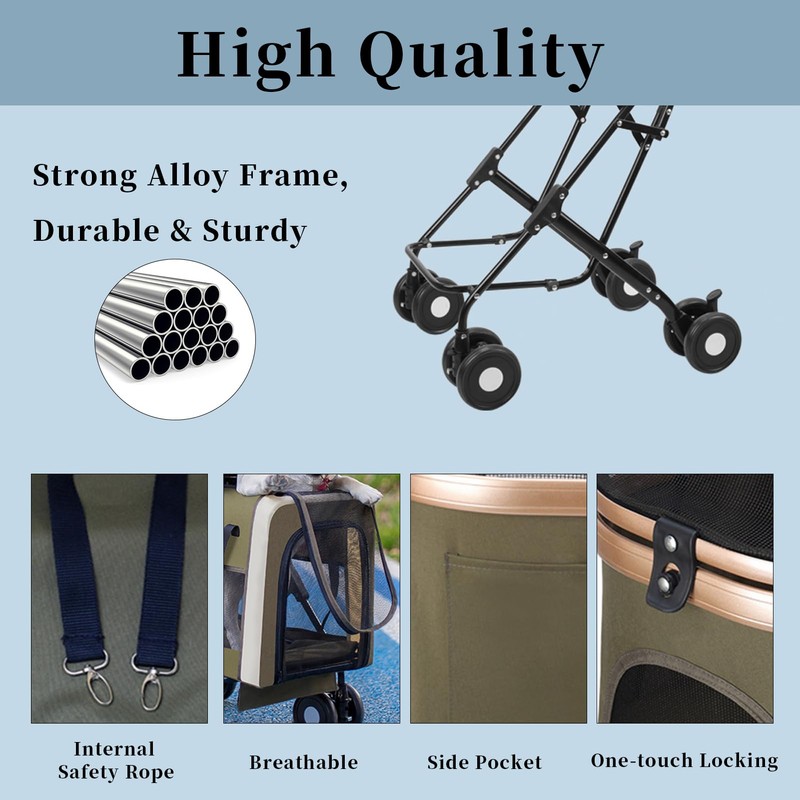 - High Quality - The pet stroller for small & medium dogs made from high-quality Oxford fabric, has excellent scratch and bite resistance performance.Its lightweight and sturdy aluminum alloy frame ensures durability and longevity.