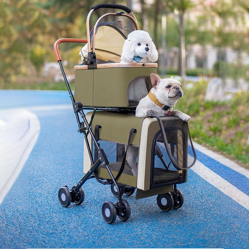 - Double Stroller for 2 Dogs - This stroller is designed specifically for two pets,can hold 2 small to medium-sized dogs or large cats.The breathable mesh windows promote air circulation and keep pets cool.Perfect for families with multiple pets.
