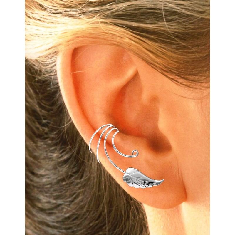 Ear Charms® Feather Leaf Wave™ Ear Cuff Non-pierced Cartilage Wrap Earring Pair in Sterling Silver