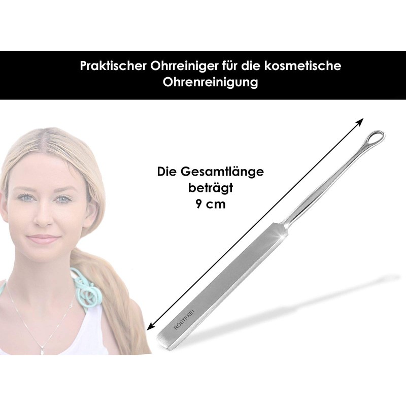 • Beauty design ✔️ Cosmetic ear cleaner for body care ear care in short version only 9 cm. Ideal for travel as it can be stored anywhere. Save yourself the constant purchase of ear buds, plastic cotton buds. We have a solution for you. Our ear cleaner made of stainless instrument steel.