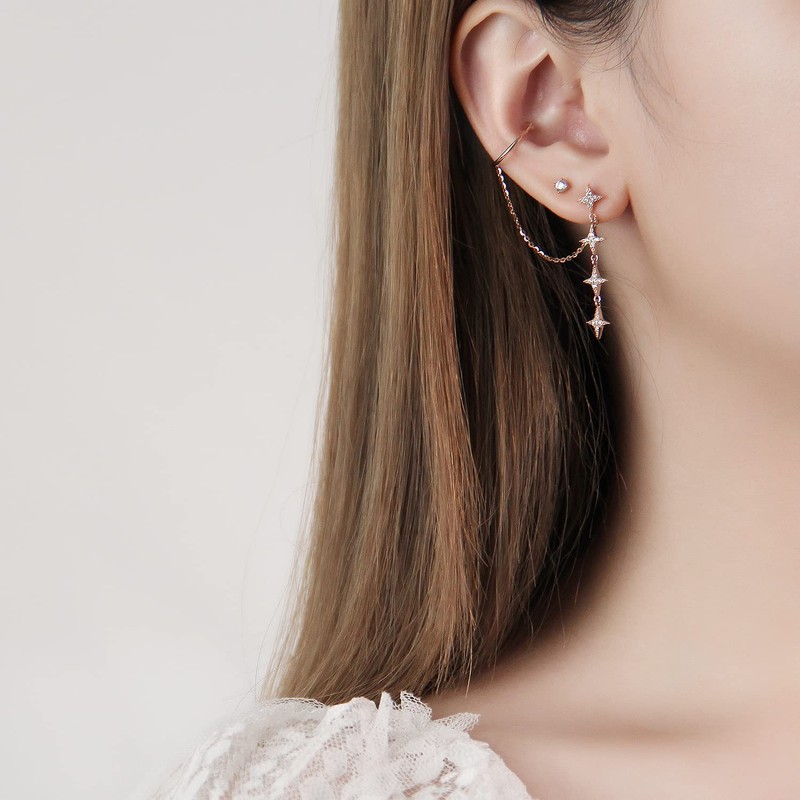 Ear Cuff Chain Earrings Star Stud Dangle Sterling Silver Star Cartilage Climber Earrings Rose Gold Hugging Ear Cuff (Gold)