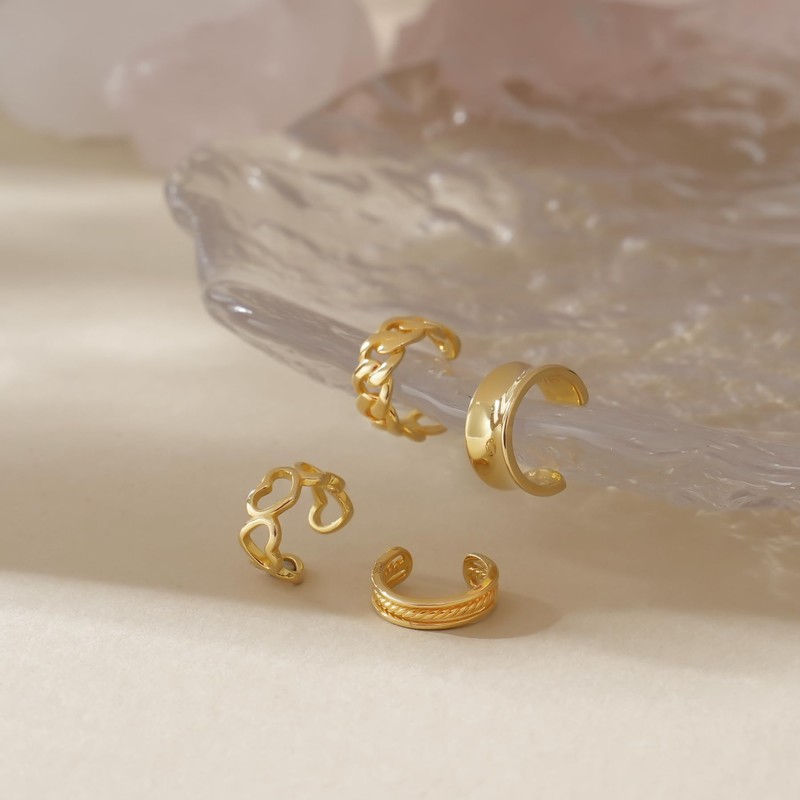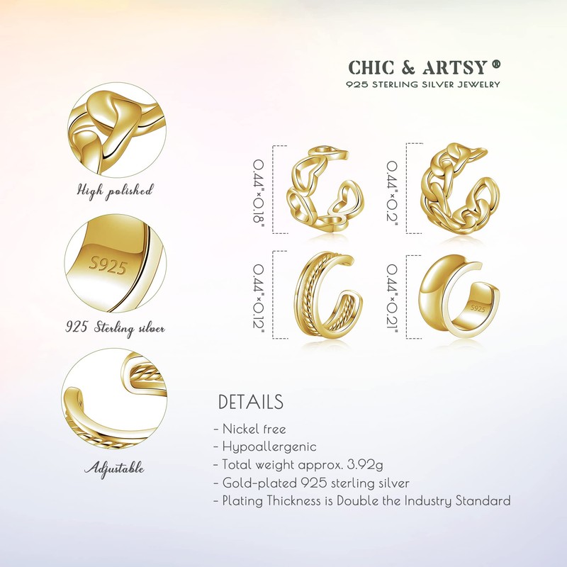 - SIZE & MATERIAL ♥ Ear cuff outer diameter is approx. 0.46'' (11.7mm) each. Adjustable (1 set of 4 pieces) *** Hypoallergenic gold plated sterling silver, nickel-free and lead-free, safe for everyone, even those with sensitive skin.