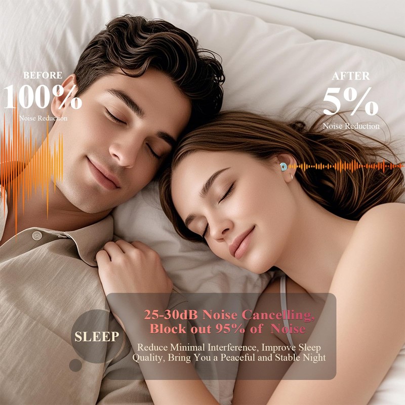 - 【HIGH-FIDELITY HUMAN VOICE & DEEP NOISE CANCELLATION 】: Advanced audio technology and deep noise reduction technology, Provide excellent sound quality. Active noise reduction can effectively block 25-30dB of surrounding noise, Protecting your ears from potential damage. For various occasions such as Sleep, Holiday Parties, Swimming, Taking care of Children, Work, Racing, Mowing, Travel, Sports Events, Music Festivals, etc. Created a peaceful space for Conversation, Relaxation, Making it an ideal choice for noise sensitive individuals.