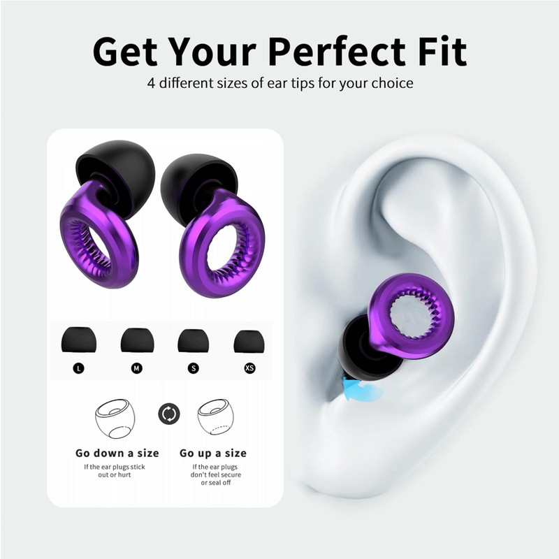 Ear Plugs for Noise Reduction 32dB, Ear Plugs for Sleeping Noise Cancelling, Soft Reusable Earplugs for Concerts, Sleep Snoring Blocking, Motorcycle, 4 Pairs & Travel Case, Purple