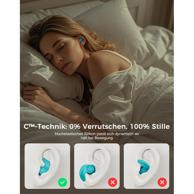 - Cloud soft | 0 pressure: ear plugs for the night adapt - no pressure when turning.