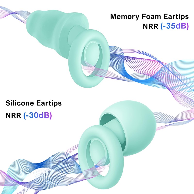 Dual Options for Every Scenario: Our ear plugs for sleep come with both 30dB silicone tips and 35dB memory foam tips, allowing you to choose the perfect level of noise reduction based on your environment and personal preference.