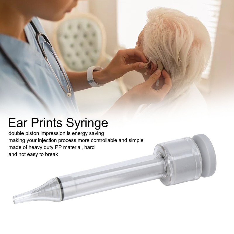 1、Unique Design: The design of double piston impression is energy saving, even high density injection materials can be easily fed into the eardrum, making your injection process more controllable and simple. 2、Excellent Material: Made of heavy duty PP material, hard and not easy to break, equipped with a protective housing that protects the syringe from contamination. 3、Practical: Simple in structure, easy to use, meticulously crafted, you can use it with confidence, suitable and wonderful for earphone ear prints, excellent syringe device. 4、Easy Operation: The transparent tube wall makes the injection into the ear procedure more visible and controllable, which is easily refillable. 5、Application: The syringe can be used for hearing aid ear mold sample in hearing aid accessory and music earphone ear print, which is professional manufactured and exquisite designed.
