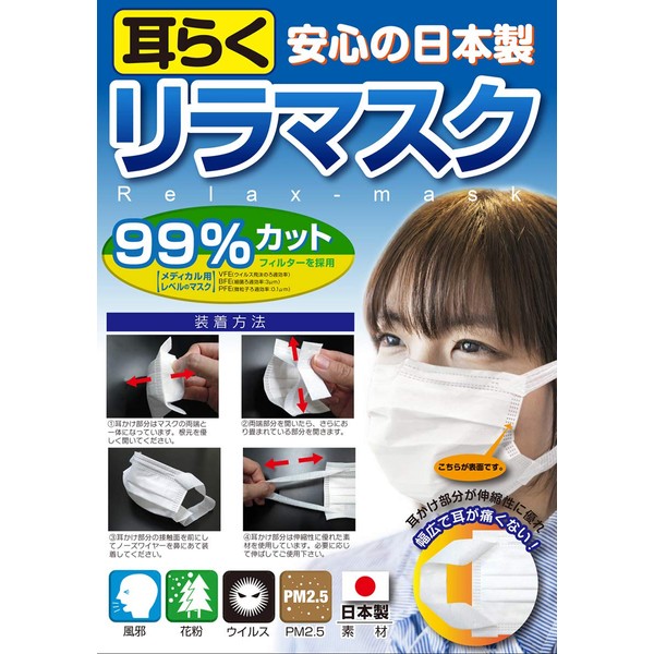 Ear Raku Lira Mask, Triple Layer, Regular Size, 10 Pieces, Made in Japan