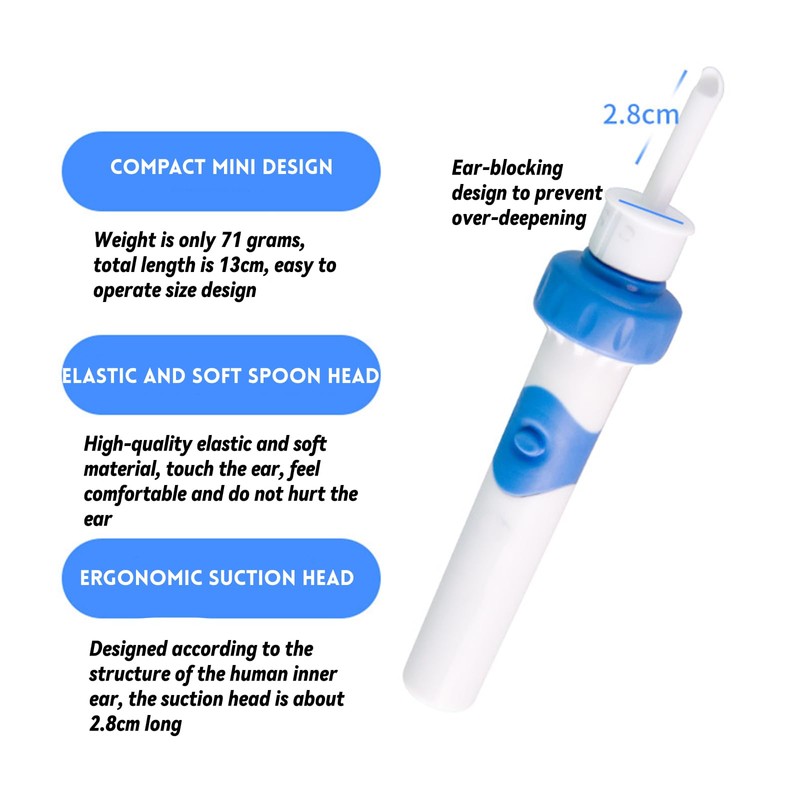 - Easy to operate: The design is simple and the operation is easy. Press the button and slowly insert the tool into the ear canal to easily complete the earwax cleaning, and subsequent cleaning is also very convenient