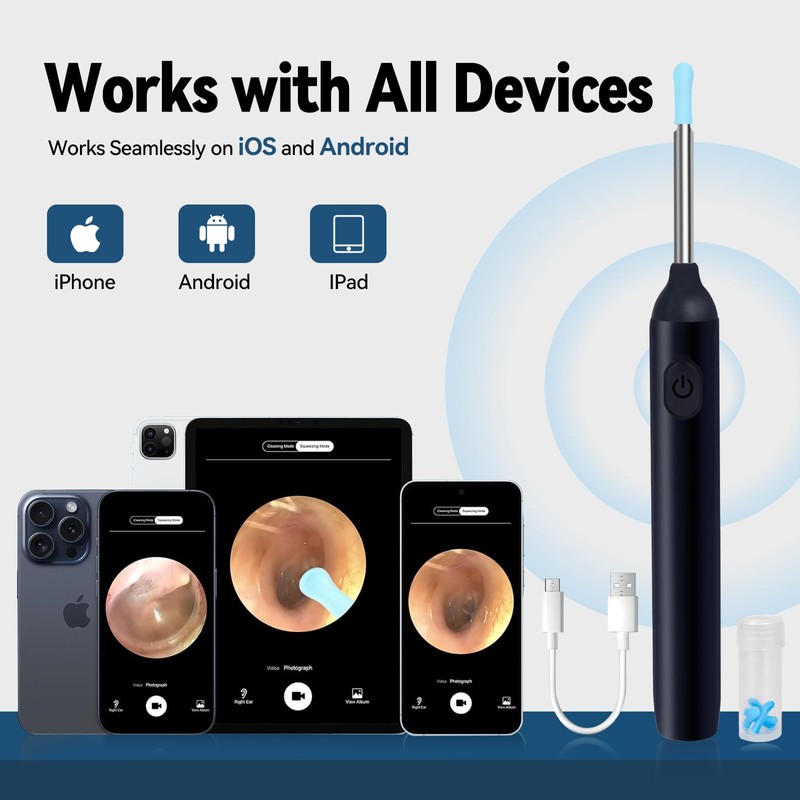 Ear Wax Removal - Earwax Remover Tool with 7 Pcs Set - Ear Canal Cleaner with Camera for iOS & Android, Luminous Tweezers for EarCleaning