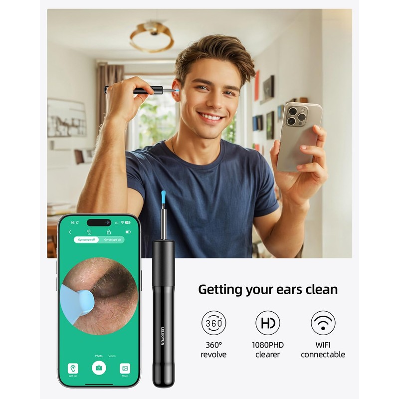 • 【Clear vision】 The E-3 ear wax remover visual lens has 300W high-definition pixels and 1080P resolution,which can record high-definition images and video details during use.The E-3 ear wax removal tool has 6 LED lights,which can provide clearer light and more efficient cleaning to better protect your ears.