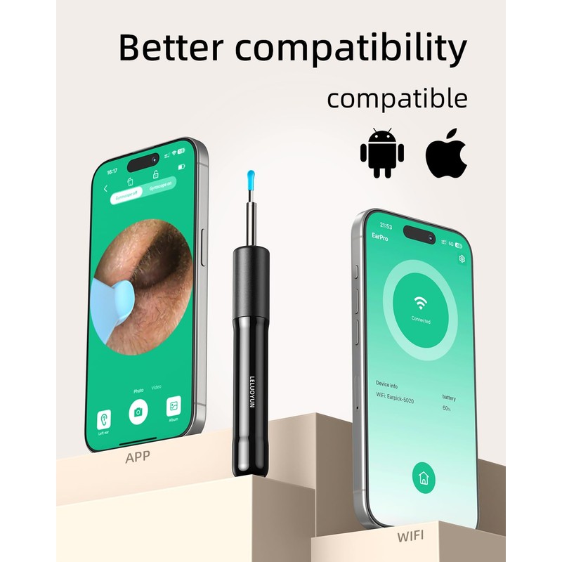 • 【Stable connection】The E-3 ear camera has a built-in WiFi hotspot.When the mobile phone/iPad device is successfully connected to the product APP,the E-3 ear wax removal tool camera has a stable 20FPS transmission rate and no image delay during use,It provides real-time shooting and recording,Video/picture files can be found and saved in the APP,