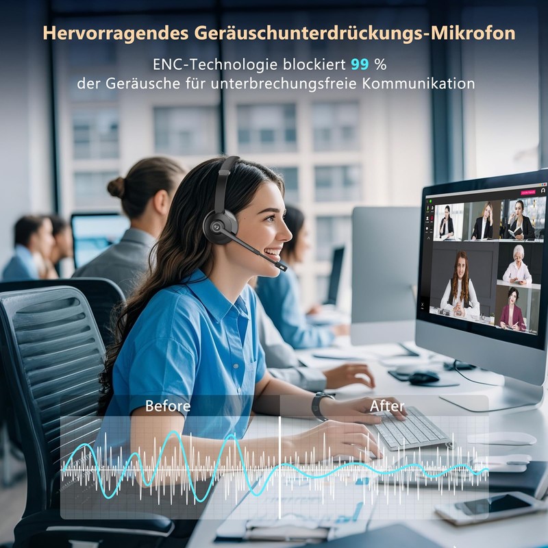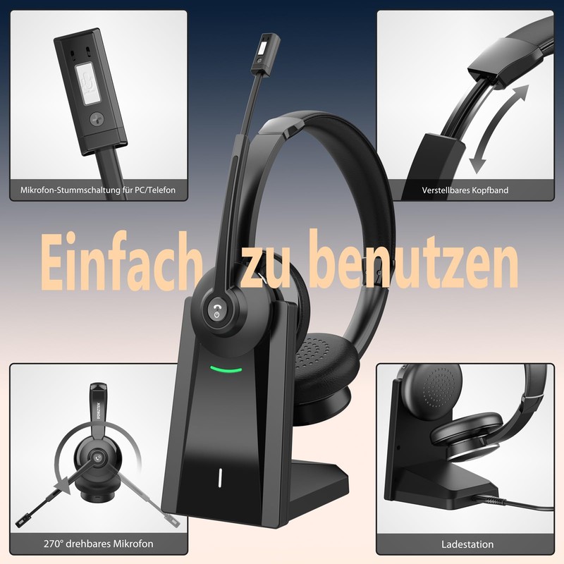 Earbay Wireless Headset, Wireless Headset with Microphone Mute for PC/Office/Zoom/Skype/Laptop/Meeting