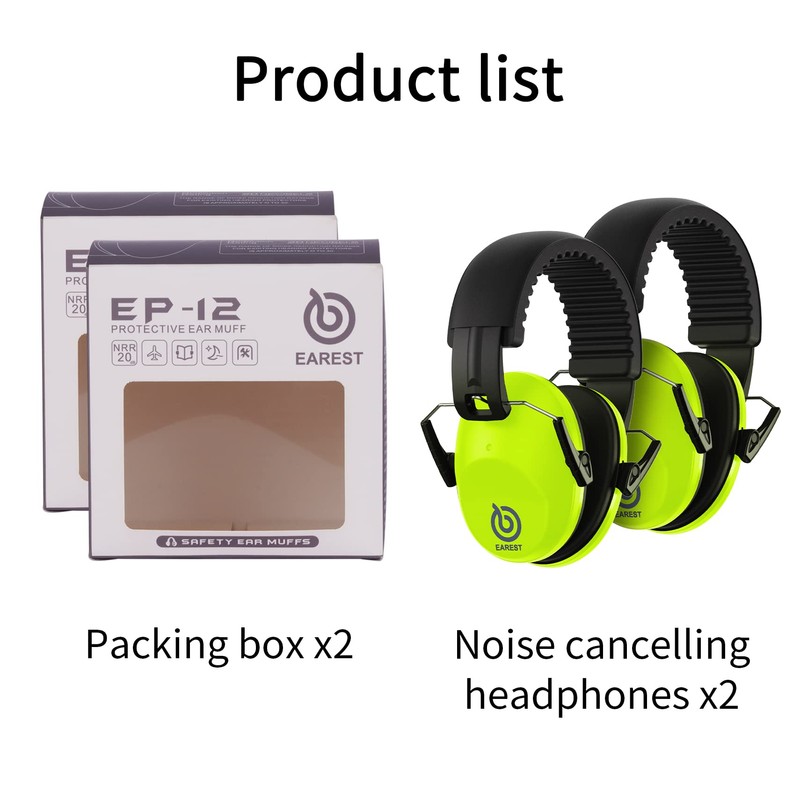 EAREST 2 Pack Hearing Protection Ear Muffs, NRR 20 dB Professional Noise Reduction Safety Earmuff/Ear Defenders/Ear Protector for Shooting/Hunting/Yard Working Fits Adults to Kids