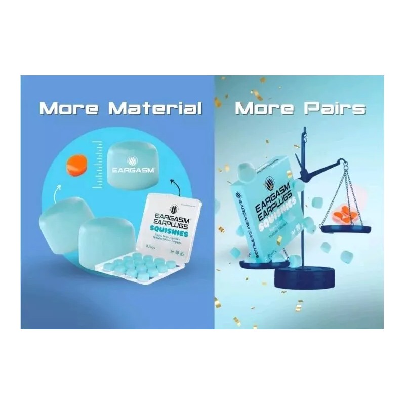BIGGER - Our moldable silicone earplugs are 50% larger than many competing brands to provide more material per earplug to get the best fit! Have smaller ear canals? No worries! Eargasm Squishies can easily be broken apart into small pieces to find the best fit possible.