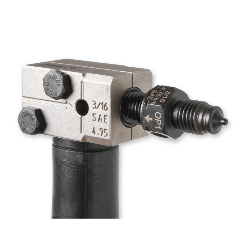 Earl's new 3/16" 45° Double Flaring Tool is small enough to allow on-vehicle use (the rubber grip can also be removed for use with a shop vise). This tool comes with die lubricant, and a positioning bolt that lines up the tubing at the correct depth to product high quality single or double flares. Ideal for use with steel, olive, copper, and Easy-Form (copper/nickel alloy) hardline tubing. Quality flaring tool at a great price.