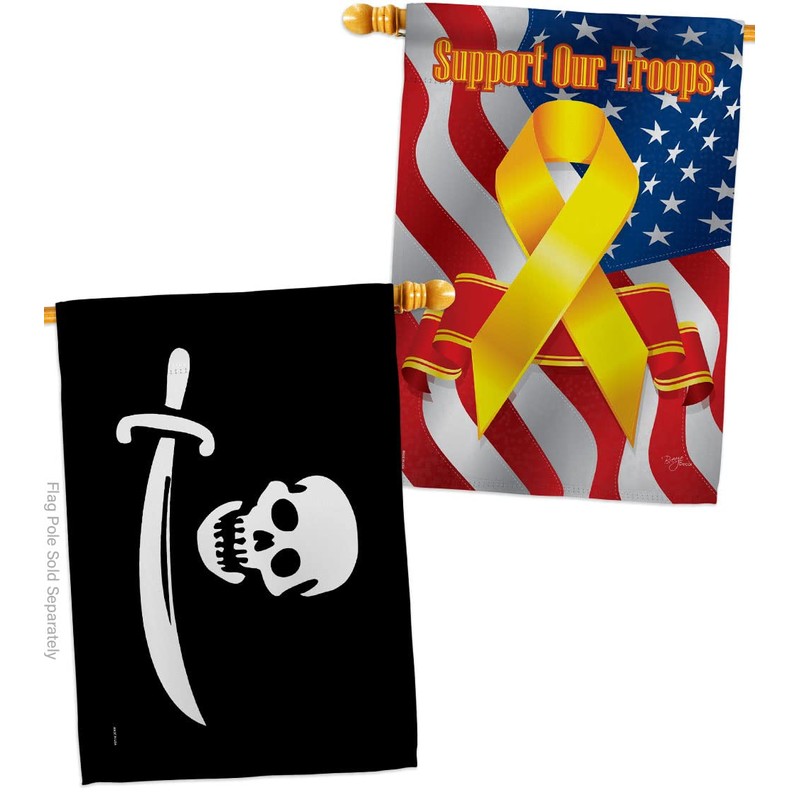 Early Bartholomew Roberts House Flags Pack Coastal Pirate Ship Skull Treasure Map Carribean Jolly Blackbeard Jack Support Our Troops Small Decorative Gift Yard Banner Made In USA 28 X 40