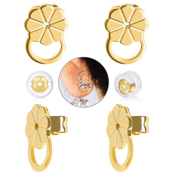 Earring Backs for Droopy Ears, Adjustable Heavy Earrings Lifters Backs, 6 Pairs (4 Gold Crown + 2 Silicone)