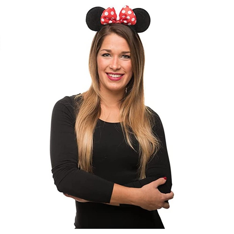 Ears Mouse, Black Mouse Ears Headbands Black Red White Polka Dot Headband with Bow in Red for Masquerade, Birthday Party, Night, Cartoon Club