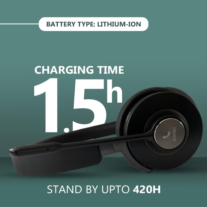 - Fast Charging Lithium-Ion Battery: Fully recharges in just 1.5 hours, so you’re always ready for your next meeting or playlist.
