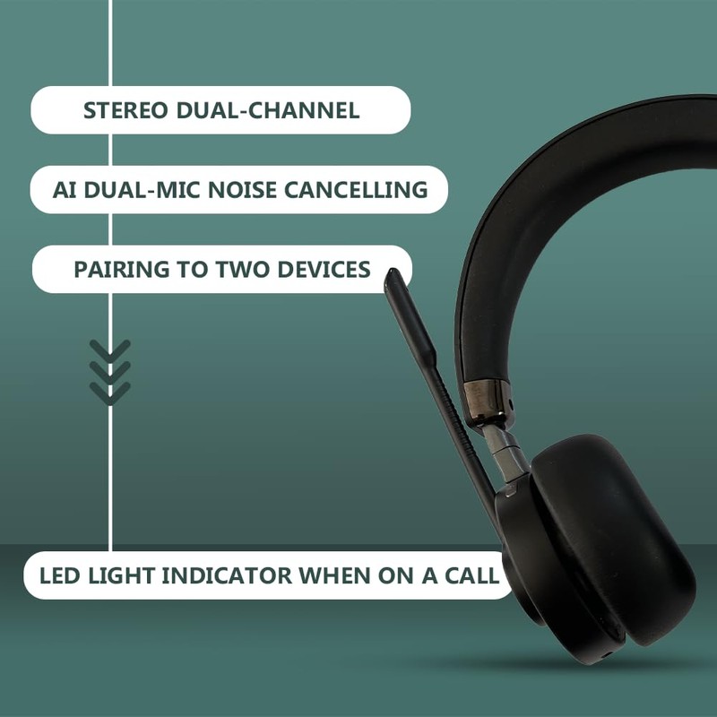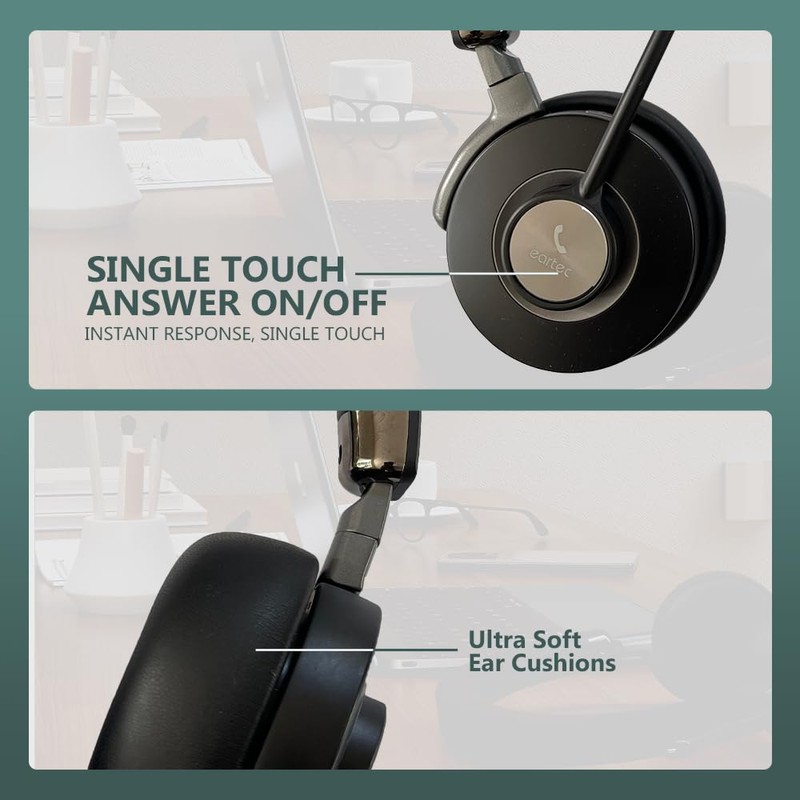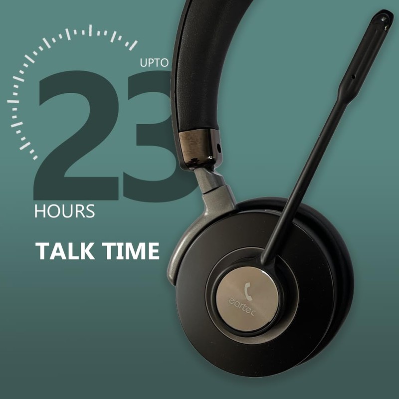 eartec Bluetooth Wireless Headset with Noise Cancelling Microphone, Dual-Channel Stereo, AI Dual-Mic, Dual Device Pairing (Dongle + Mobile), Ultra-Soft Adjustable Headband & Cushions, LED Indicator