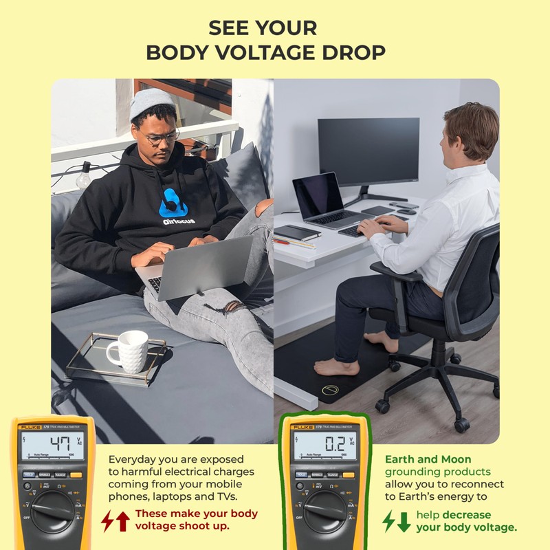 Designed to conduct the earth’s electrical charge and connect it to your body while sitting and standing. Using our grounding mats can help you experience these benefits: