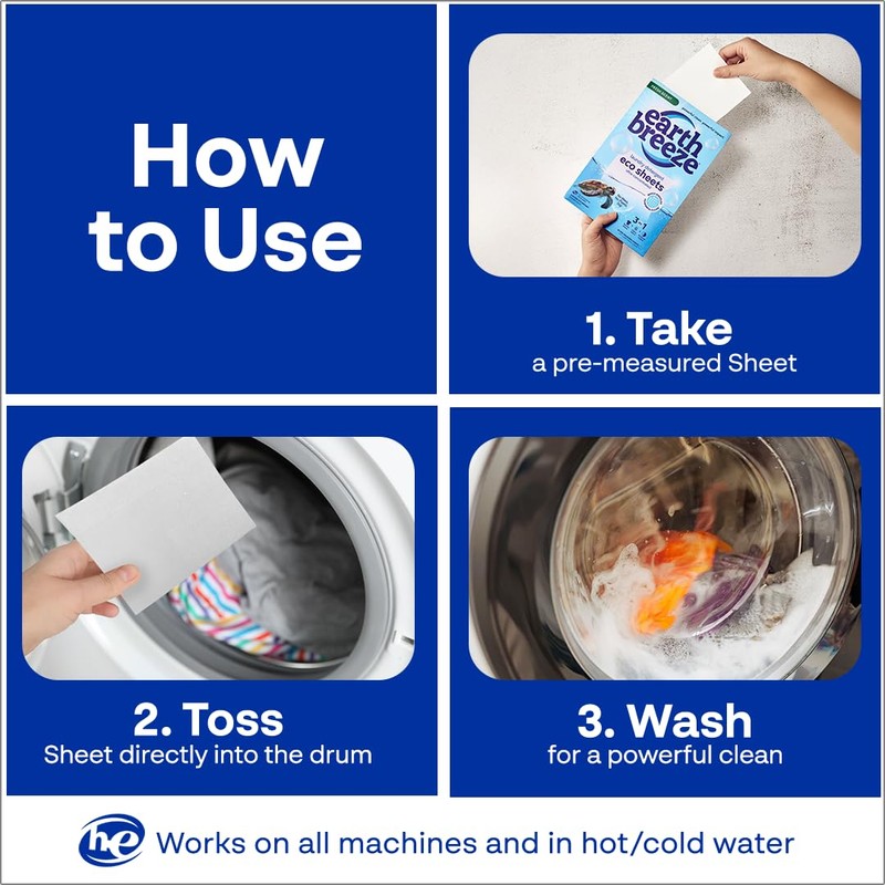 Earth Breeze Laundry Detergent Sheets Fresh Scent - 180 Loads Eco Liquidless Soap - Travel-Friendly for Hot & Cold Cycles, Tackles Tough Stains & Odors - Gentle on Skin, 90 Ct (3 Pack)