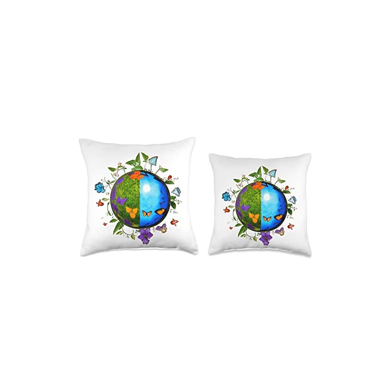 Earth Globe Insects Flowers Butterflies World Environment Throw Pillow