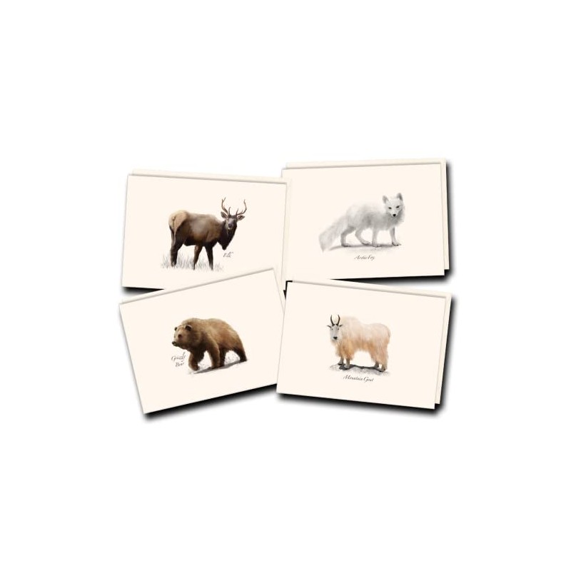 Earth Sky + Water - Western Mammal II Assortment Notecard Set - 8 Blank Cards with Envelopes (2 each of 4 styles)
