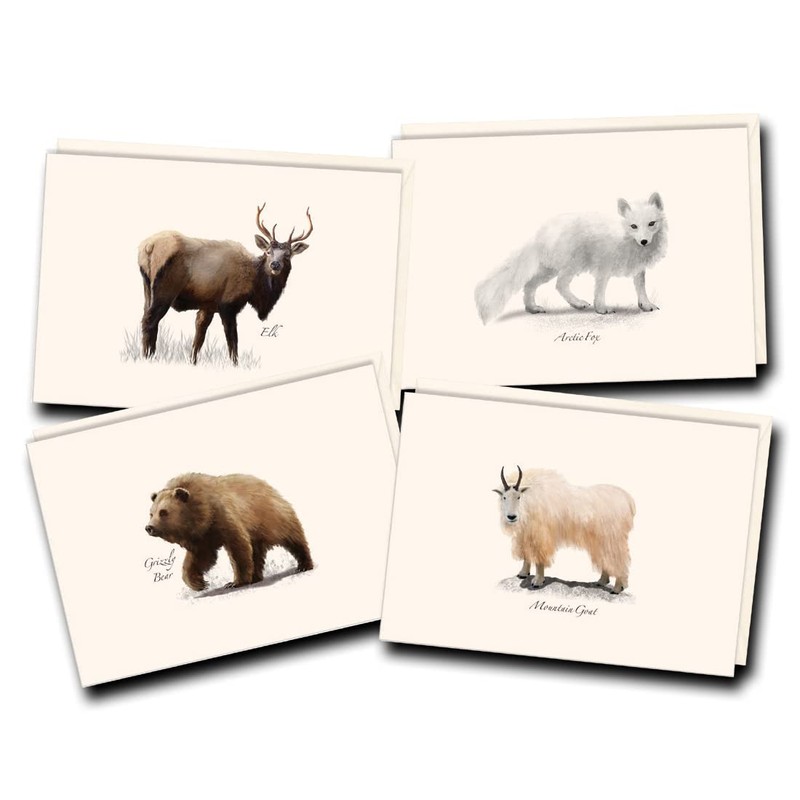 Earth Sky + Water - Western Mammal II Assortment Notecard Set - 8 Blank Cards with Envelopes (2 each of 4 styles)