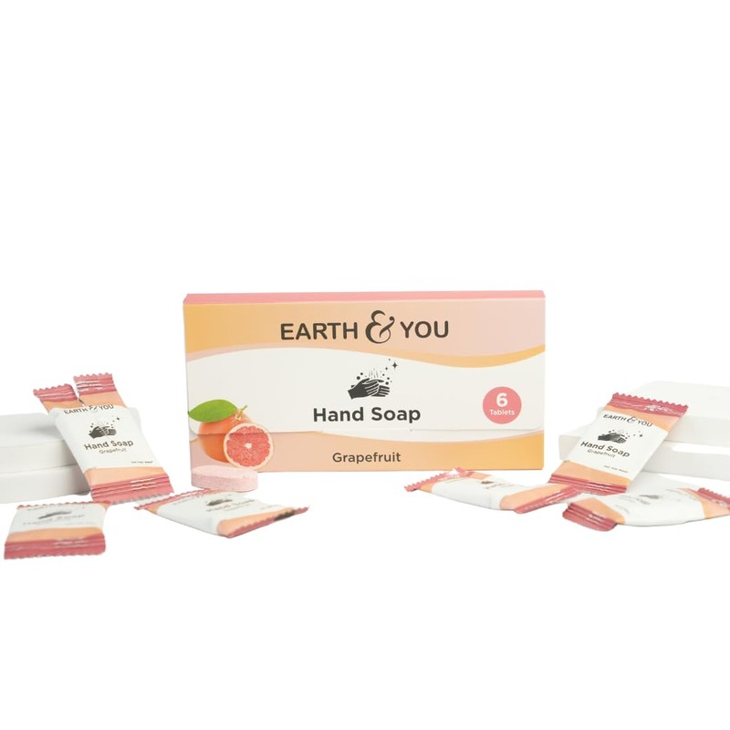 Earth & You Foaming Hand Soap Tablets (6 Pack) – Natural Hand Wash Refill for Foaming Dispensers – Cleansing & Moisturizing – Compostable & Recyclable Packaging (Grapefruit)
