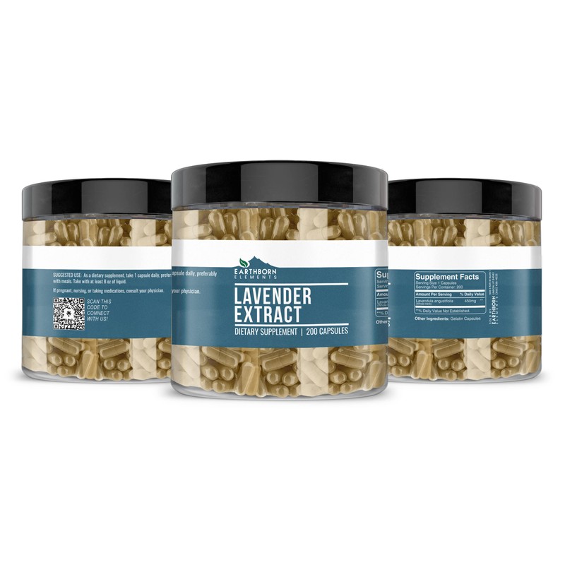 Earthborn Elements Lavender Extract 200 Capsules, Pure & Undiluted, No Additives