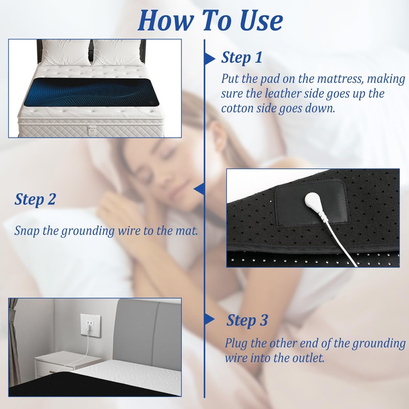 - How to Work: The Grounding mat connects to the Earth via a UK grounding cord and a ground socket of the wall electrical outlet while we are sleeping. When we are grounding, the positive and negative ions are attracted to clump together and the negative ions enter the human body to keep our health and better sleep.