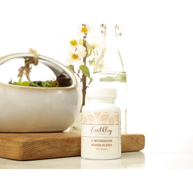 Earthley Wellness, 5-Mushroom Super Blend, Nutritional Support, Naturally Occurring Vitamins and Minerals, Antioxidants, Supports Gut Health, Immune Health, All Organic Supplements (60 Capsules)