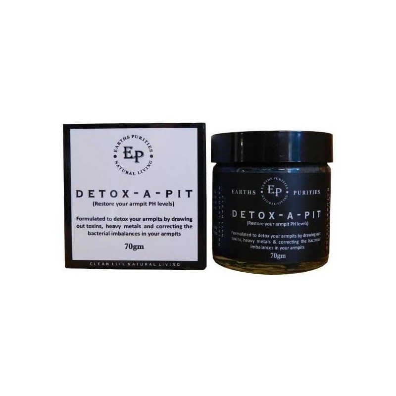 Earths Purities Detox-A-Pit was created as switching to a natural deodorant can be a frustrating and costly exercise for many. Many people encounter odour, excessive sweating, rashes, redness, discolouration and irritation. After many years of using antiperspirants, sweat glands get blocked and your system gets loaded with toxins, heavy metals and impurities with no outlet of escaping.