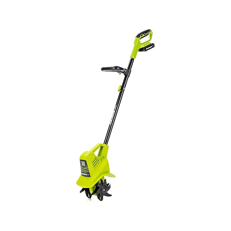 Earthwise Power Tools by ALM TC70020IT 20-Volt 7.5-Inch Cordless Electric Garden Tiller Cultivator, (2AH Battery & Fast Charger Included), Green
